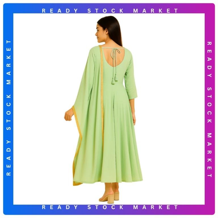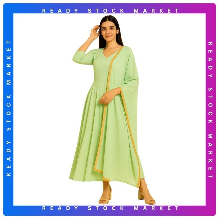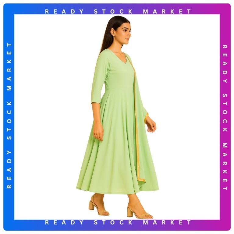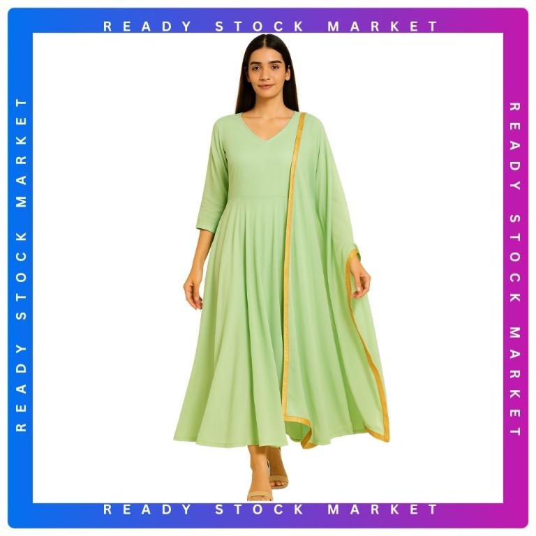 Green Plain Gown Frock with Beautiful Lace Dupatta