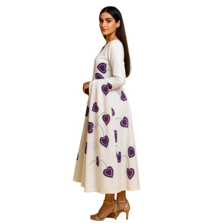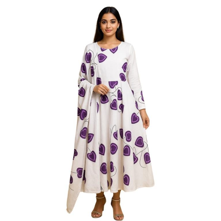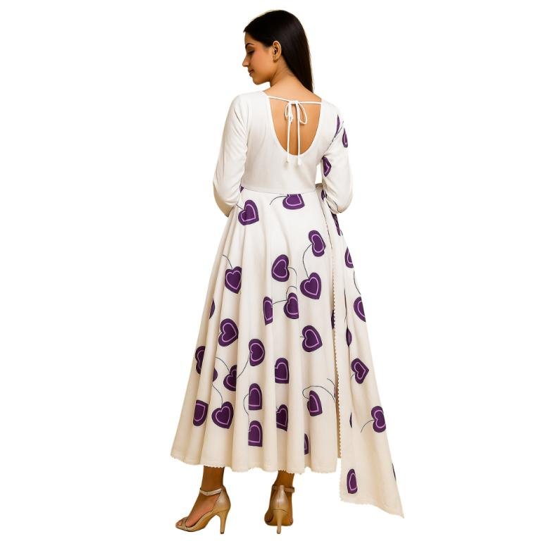 White and Purple Gown Frock with a Beautiful Heart Shape Design, paired with a