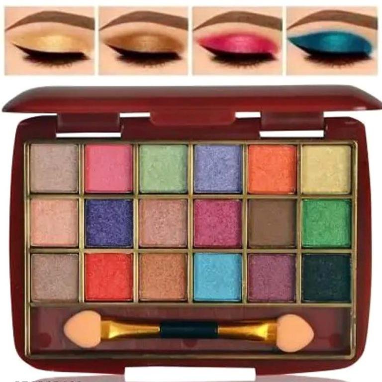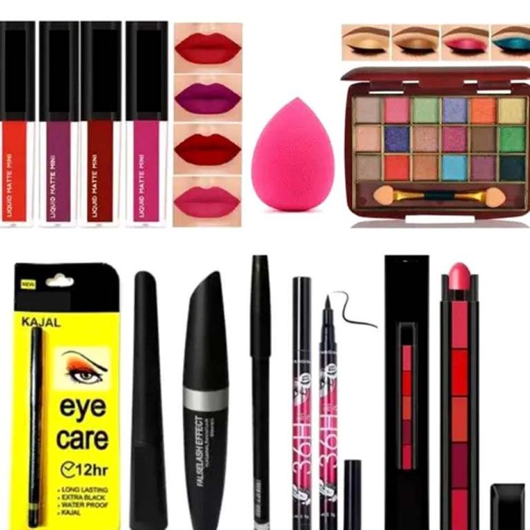 Daily Use face makeup combo for women | mini 18 color eyeshadow 4pcs mini lipstick 5in1 lipstick eyeliner sponge puff
