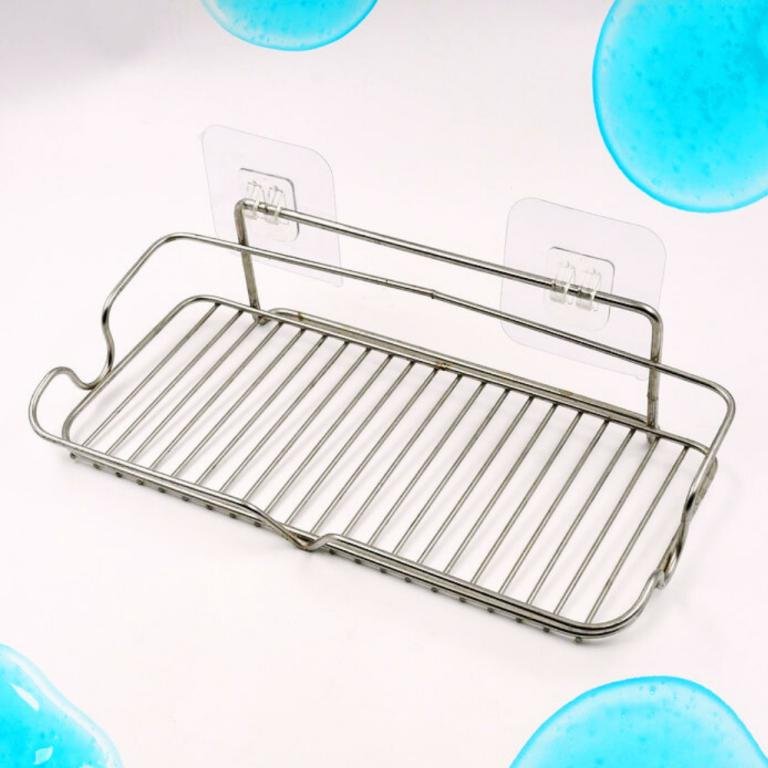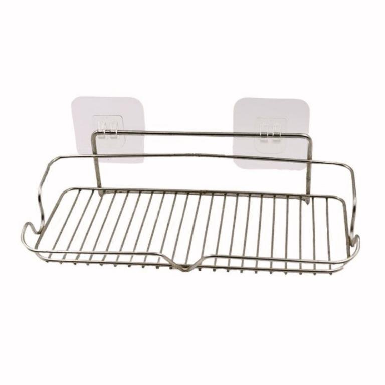 Steel Kitchen Bathroom Shower Shelf Storage Suction Basket Rack Adhesive