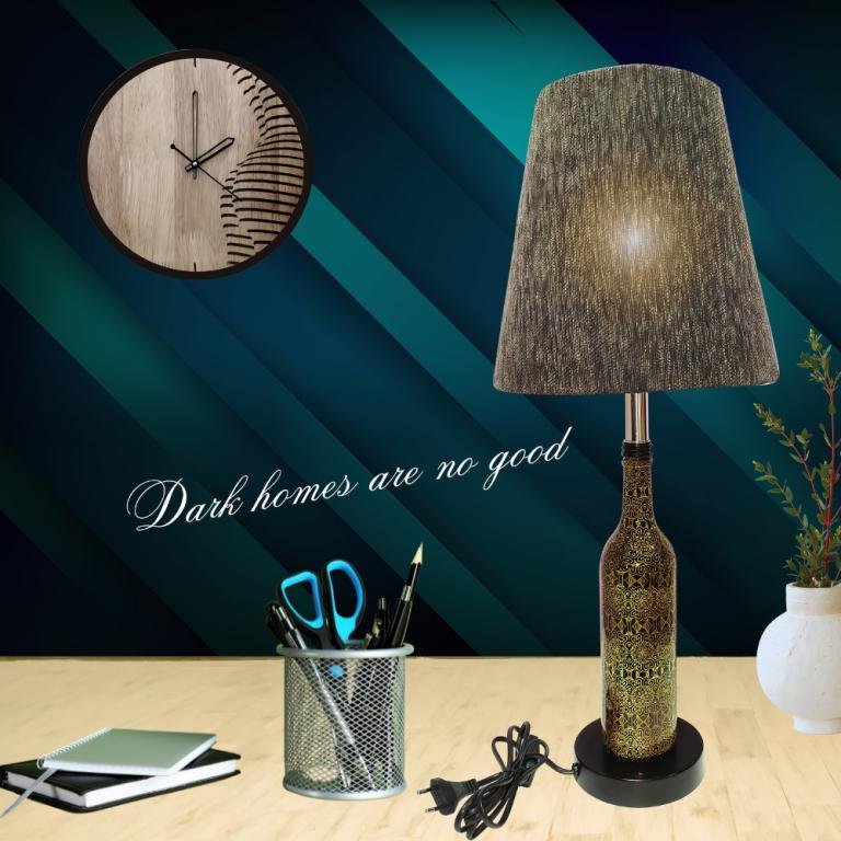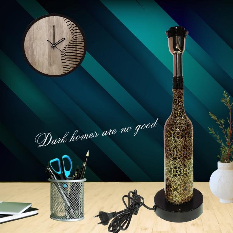 A wine bottle lamp with light yellow printed lamp shades would add a warm and charming touch to any space. If you're looking to create one yourself.