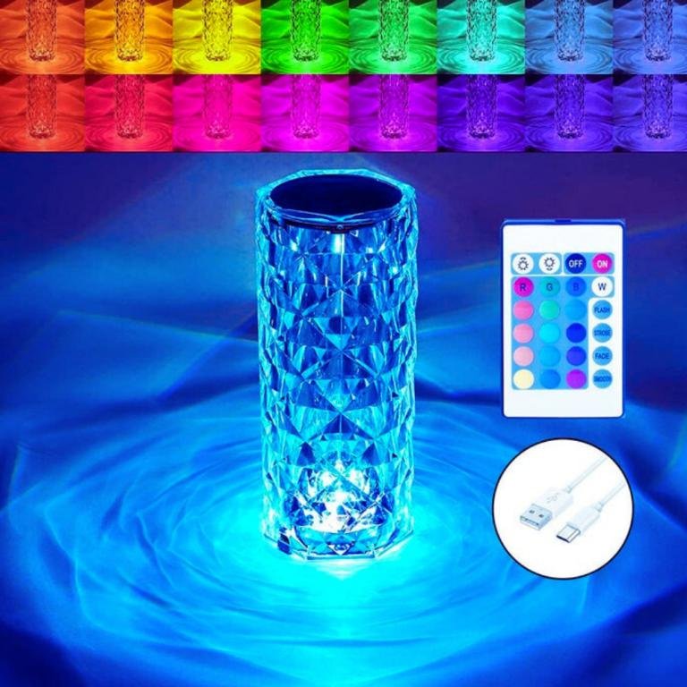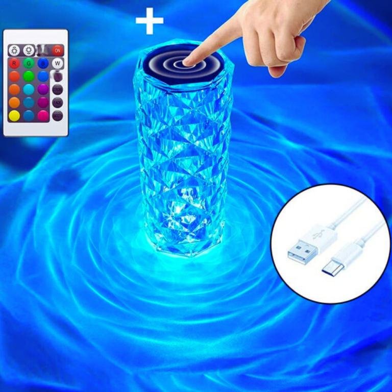 CONTROL SWITCH & USB CHARGING :- This Crystal Diamond Lamp Is Equipped With A Remote Control, Which Can Control The Change Of 16 Colors. You Can Also Touch The Top Of The Lamp To Turn On/Off And Adjust The Color Of The Light. Super Battery Life, A Rechargeable Design.