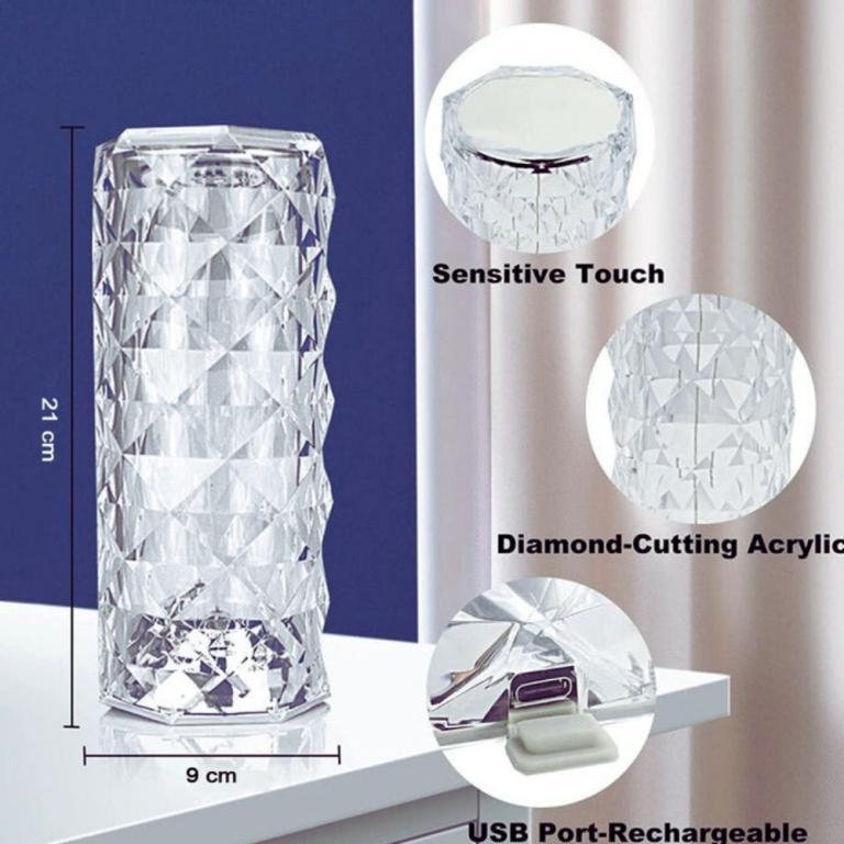 Rose Crystal Diamond Table Lamp :- Turn On This Table Lamp, The 3D Visual Effect Is Like A Rose Blooming On The Table, The Square Cut Refracts The Light And Shadow Like A Diamond, The Rose Shape Reflects The Shadow, A Charming Showing Light And Shadow Effects. This Crystal Table Lamp Is Simple, Luxurious, Comfortable, And Romantic. Suitable For Family, Balcony, Party, Bar, Table Decoration.