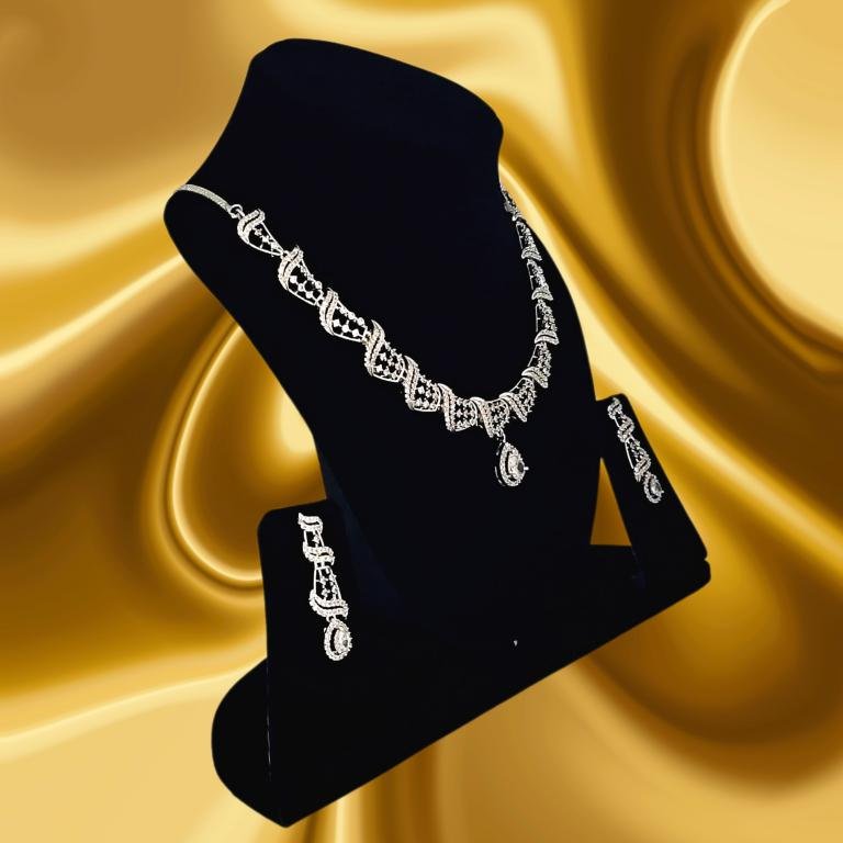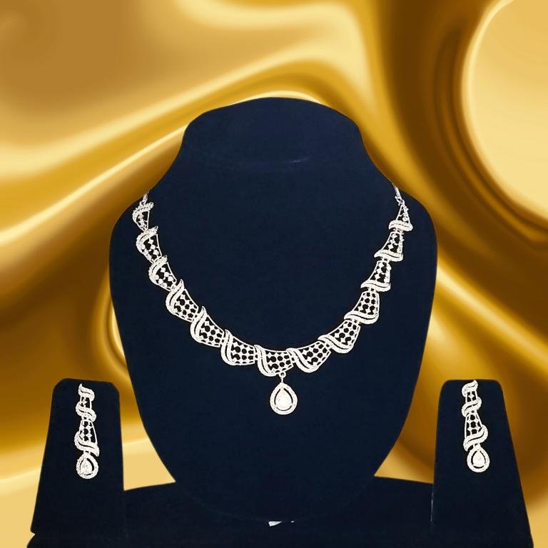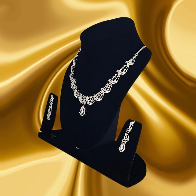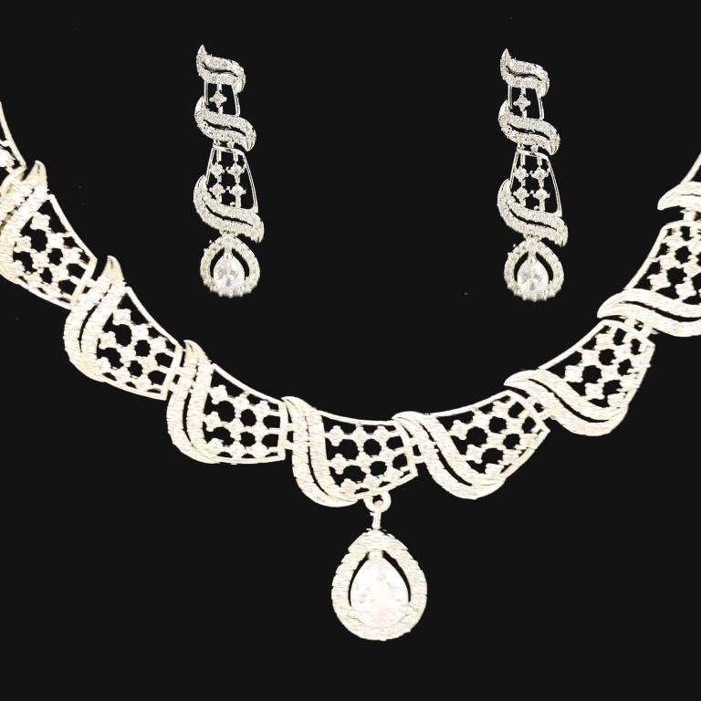 Quality Rhodium-Plated Silver White Stone-Studded Jewellery Set