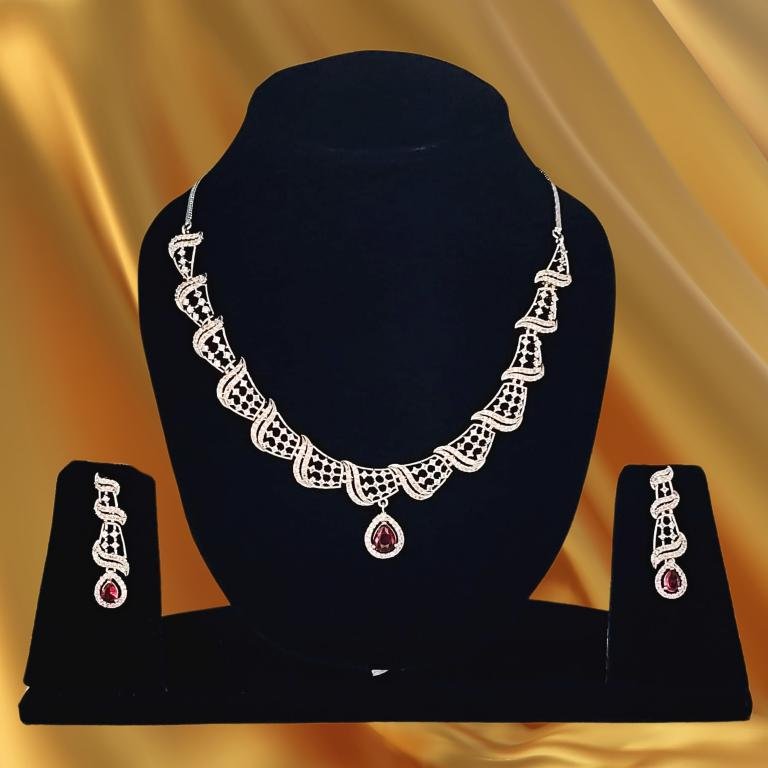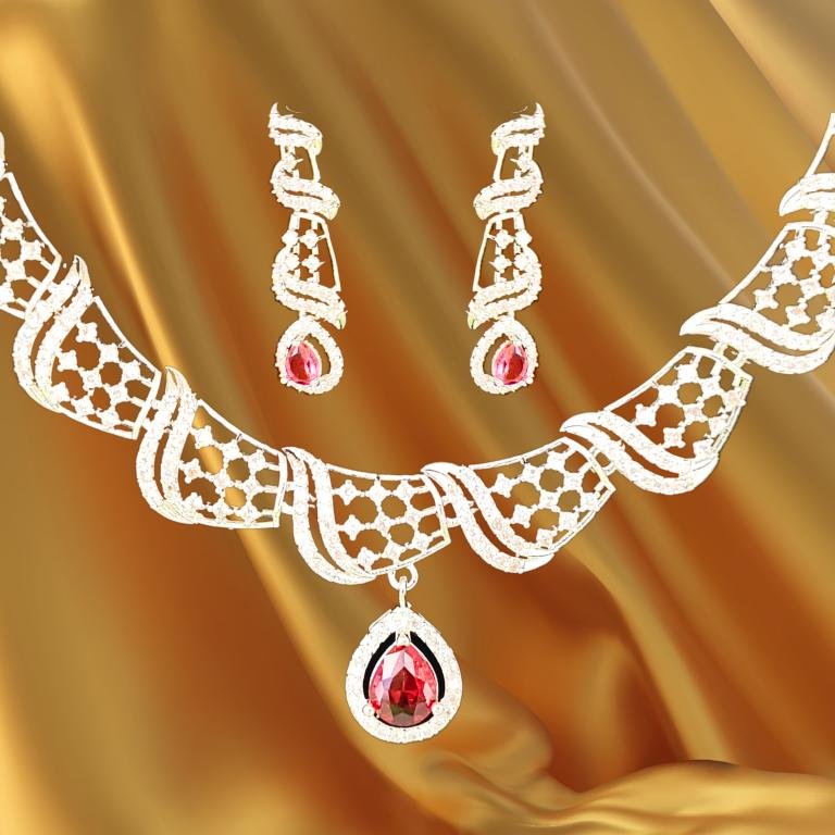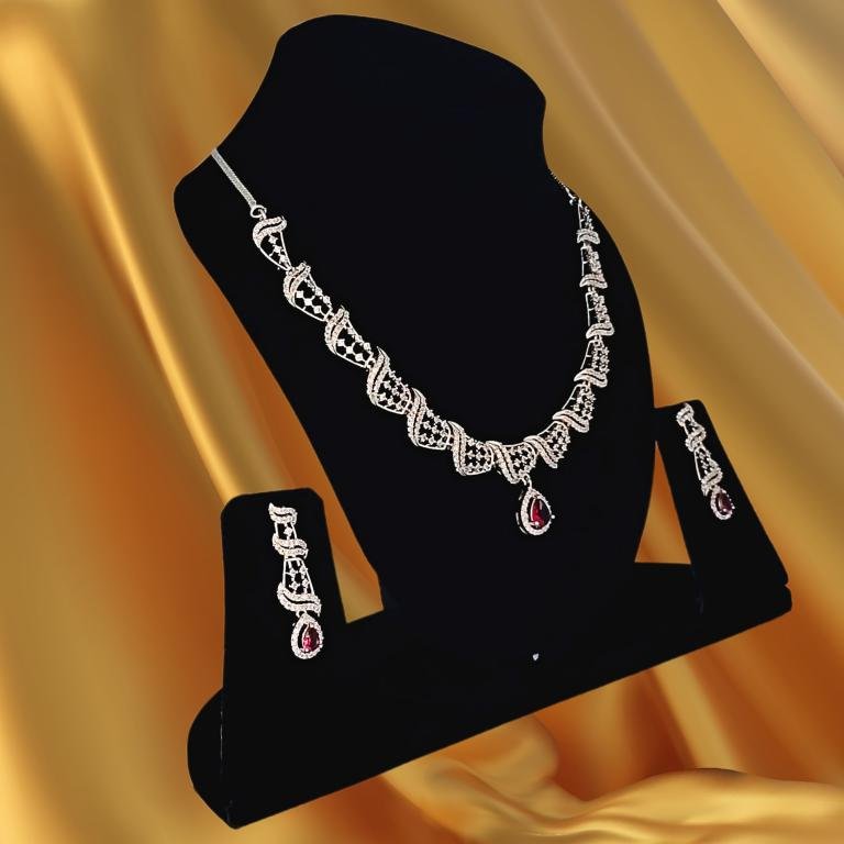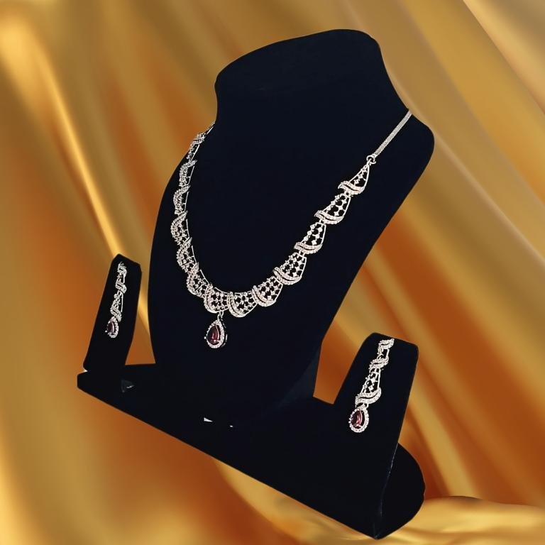 Name : Premium Quality Rhodium-Plated Silver Pink & White Stone-Studded Jewellery Set