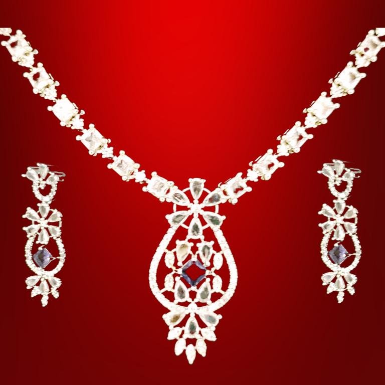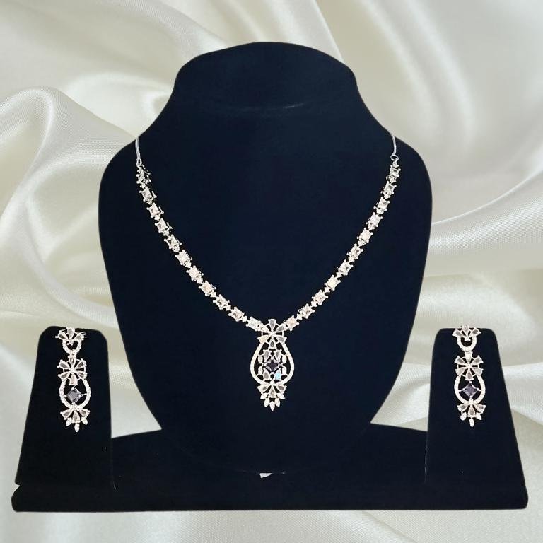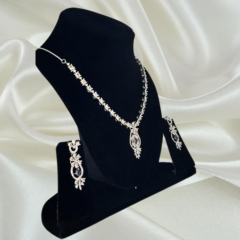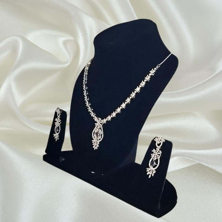 Rhodium-Plated Stone-Studded Necklace and Earrings Base
